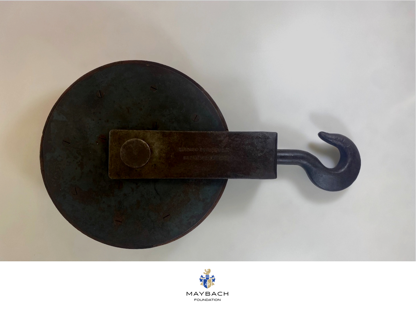 Every now and then, a simple object reminds us how much history can live in the everyday. A few weeks ago, a pulley block from the 1920s was found during renovation work in an old house in Friedrichshafen. It had been sitting there, forgotten, for who knows how long. When our German collections team heard about it, they investigated it right away. The more they learned, the clearer it became that this was more than just an old workshop tool. After confirming its origin, the pulley was added to the historical collection of the Wilhelm and Karl Maybach Foundation.