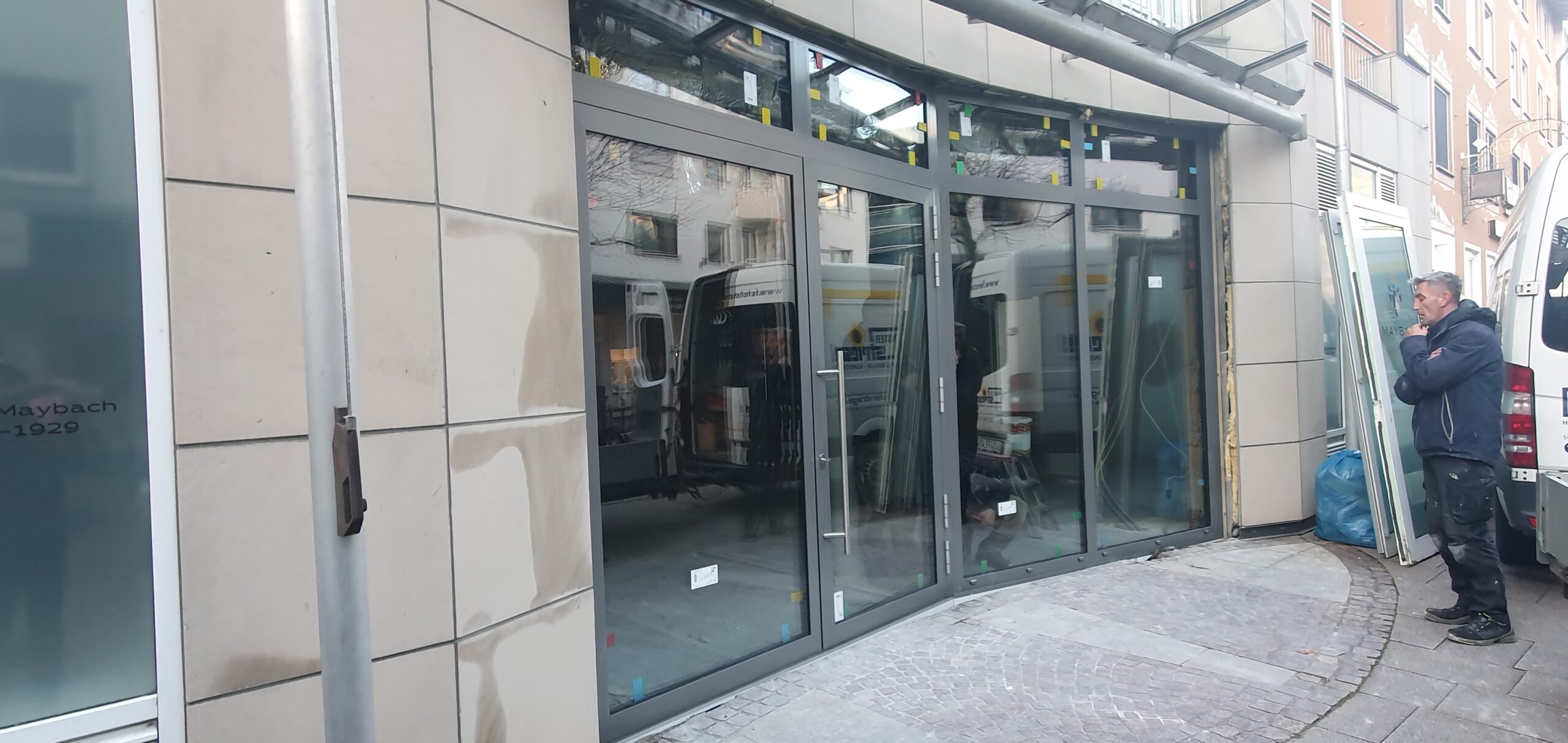 To install the new doors, even the paving stones in front of the façade had to be removed and temporarily stored. For the project team, this meant more than just a pile of stones: we also see the image as a metaphorical reference to the many milestones we have achieved together on our way to the exhibition depot. We are delighted with all the visible progress and know that we owe it to the reliable specialist companies with their highly competent technicians and craftsmen. Once again, we see that behind good museum cultural work there is always experienced craftsmanship with traditions dating back centuries in some cases and high standards of quality. We are full of praise for the commitment and optimal coöperation between the trades. They are doing everything possible to set up appointments at short notice and speed up the completion of the work. All this is being done with a view to the early opening of the Maybach exhibition depot for our visitors.