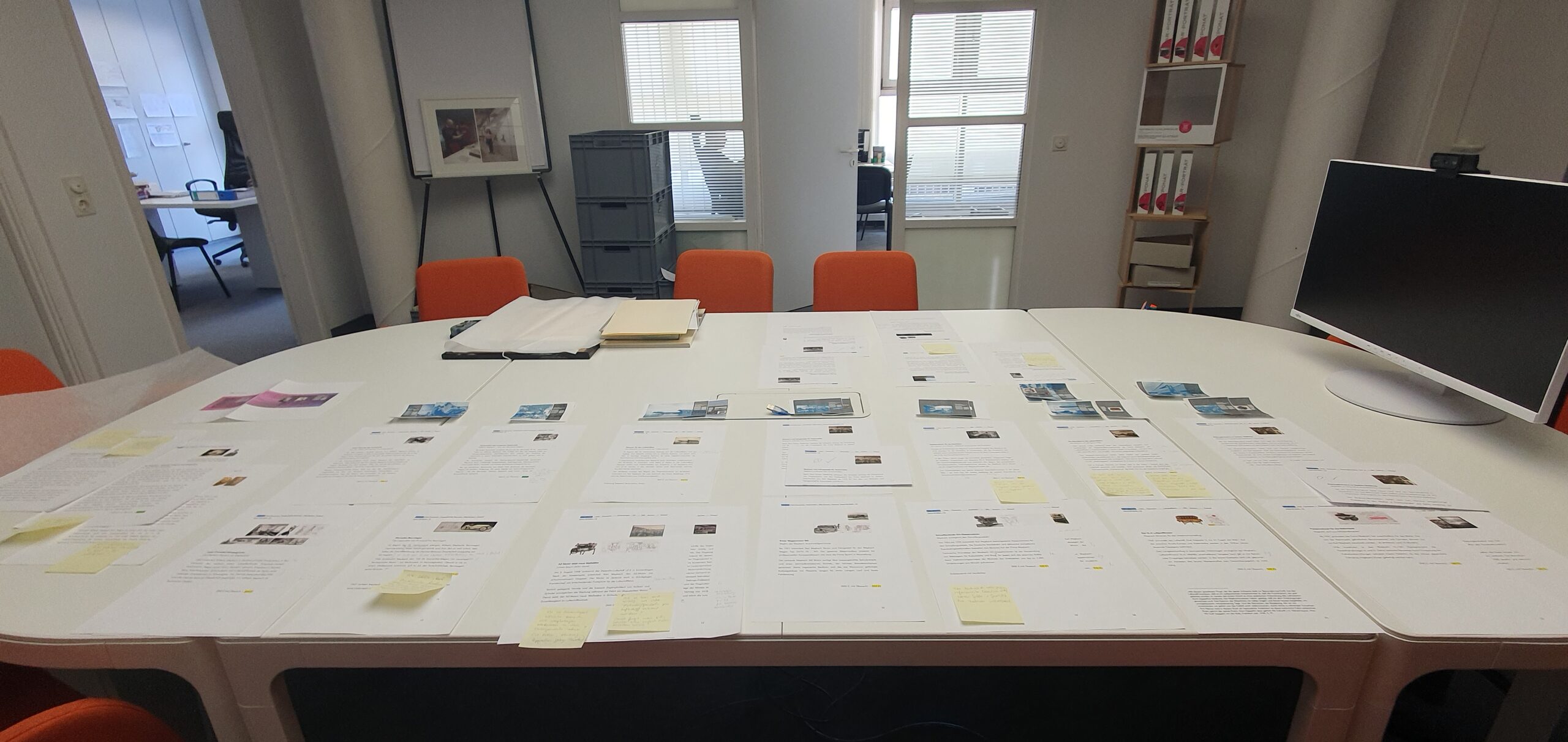 Bevor die Grafikproduktion starten kann, ist Fleißarbeit in der Schreibwerkstatt gefragt: Viel Fachwissen soll in eine überschaubare Anzahl an Saaltexten mit festgelegter maximaler Zeichenzahl übertragen werden – auch für gestandene Kuratoren keine triviale Aufgabe. Bis zur Endredaktion werden dann noch mehrere Korrekturschleifen gedreht, um Inhalte zu schärfen und Druckfehlern auf die Schliche zu kommen. Doch gerade der Feinschliff und der damit verbundene gemeinsame Austausch im Team machen Spaß, weil wir hier bereits das Ergebnis im Kleinformat vor uns sehen. Foto: Maybach Stiftung.