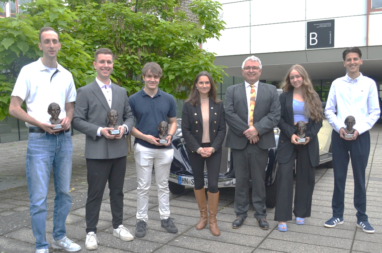 💡 The Maybach Foundation and family were proud to support the event again this year. Uli Maybach, great grandson of Wilhelm Maybach and President of the Foundation, shared a personal video message and was represented on site by Dr. Corinna Basler. Together with Principal Detlev Roepke, Dr. Basler presented the award certificates and Wilhelm Maybach busts to the winners.